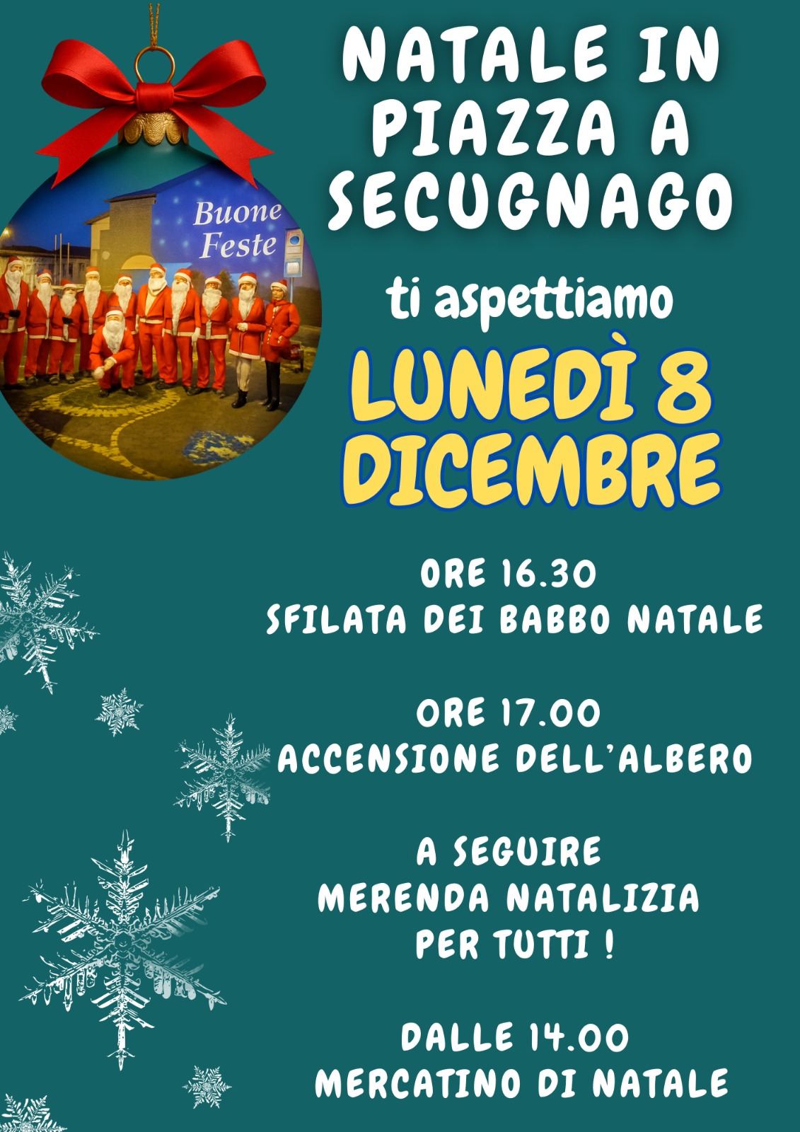 Programma delle Iniziative e degli eventi che si terranno in piazza Matteotti a Secugnago il giorno 8 Dicembre 2025