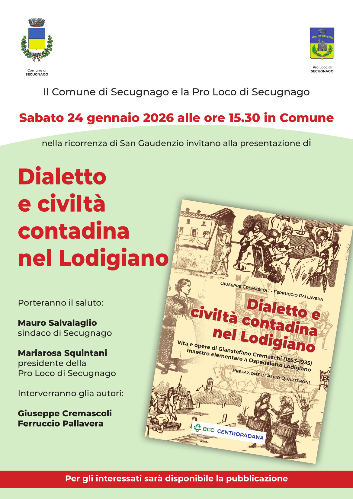 Invito alla presentazione del libro "Dialetto e civiltà contadina nel Lodigiano" - Sabato 24.01.2026 ore 15:30