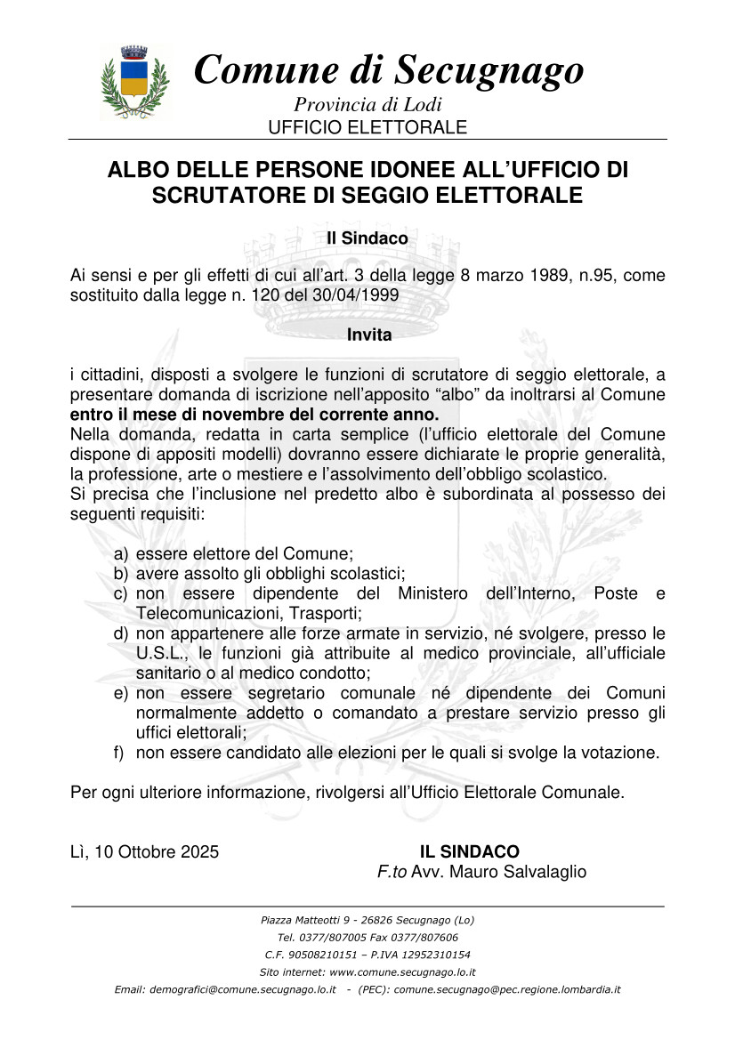Email: demografici@comune.secugnago.lo.it
