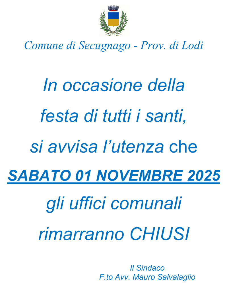 Chiusura degli uffici comunali il giorno Sabato 01/11/2025
