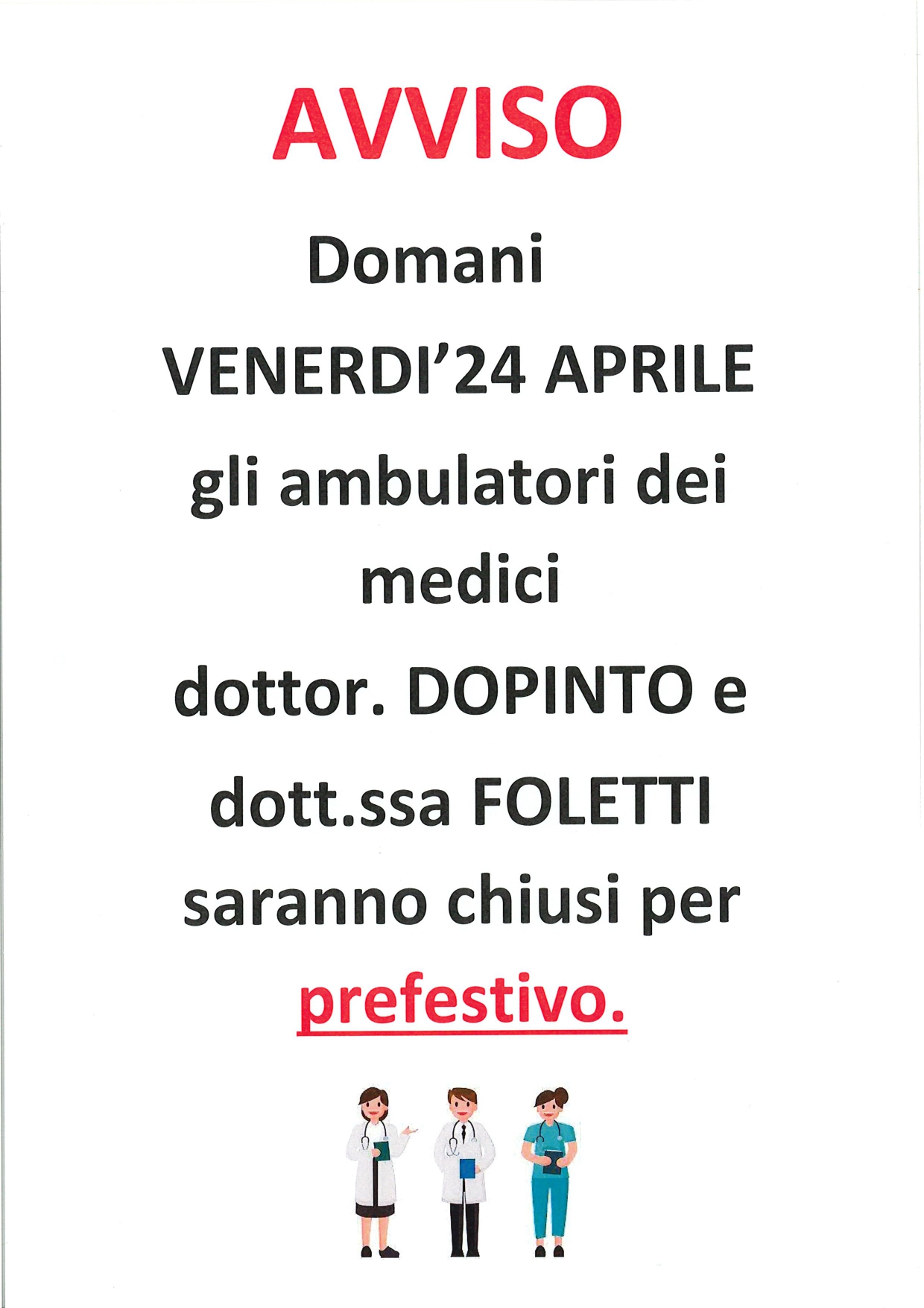 Comunicazione chiusura ambulatori medici Dopinto e Foletti il giorno 24 Aprile 2026